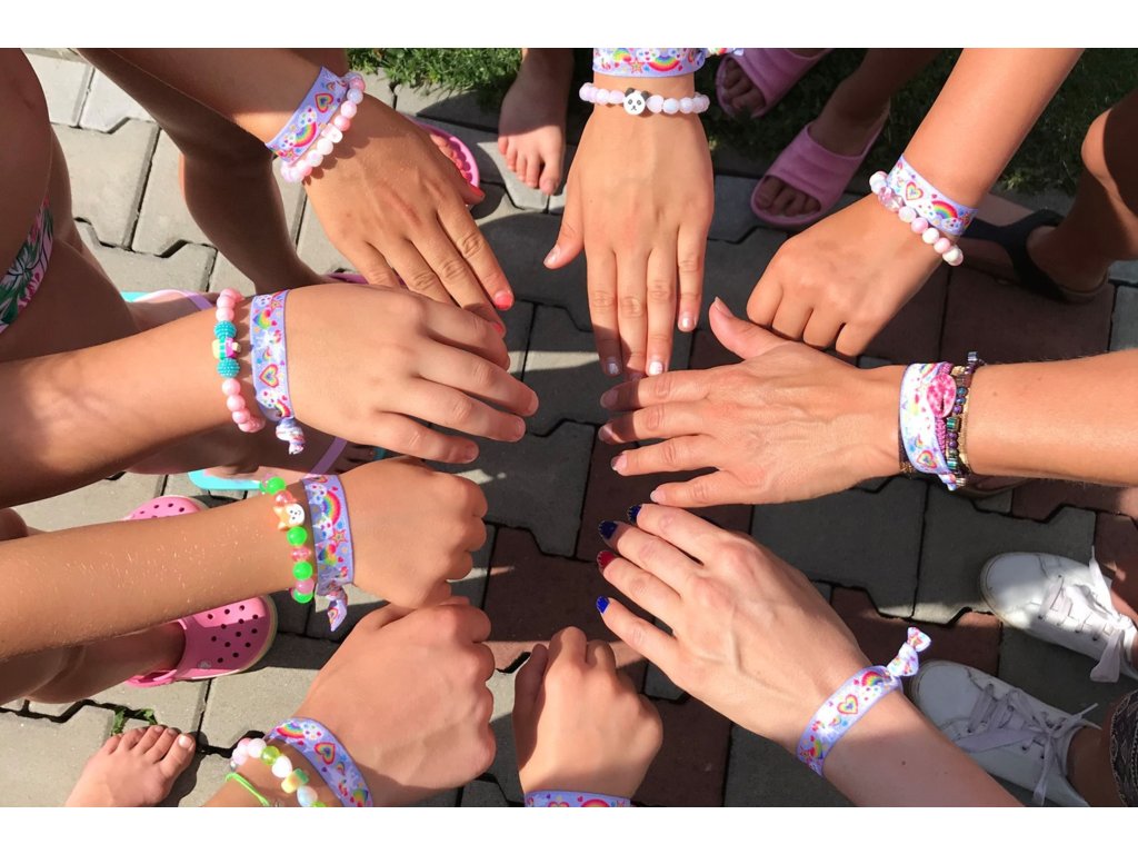 jednoduchý návod, krabička, 160 akrylových korálků (11 svítících), 10 ks gumiček na navlékání, přívěsky, kytička, ovoce a jiné tvary fimo, korálky ve tvaru srdíček a motýlků