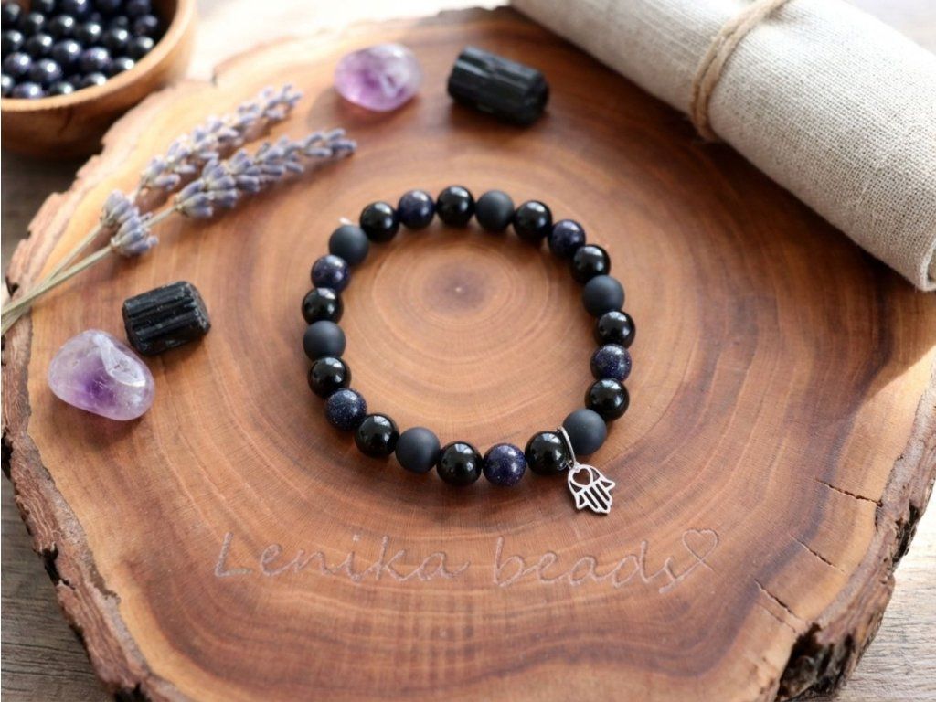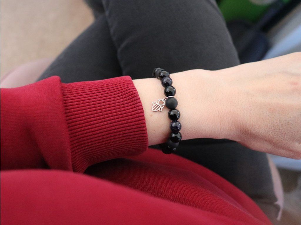 Náramek je z onyxu, avanturínu a přívěsku z chirurgické oceli.