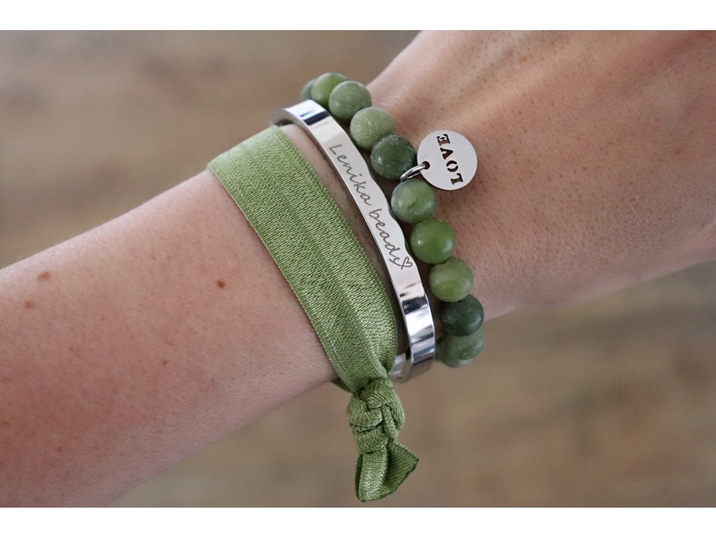Náramek je z jadeitu přívěsku z chirurgické oceli.