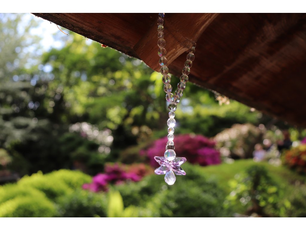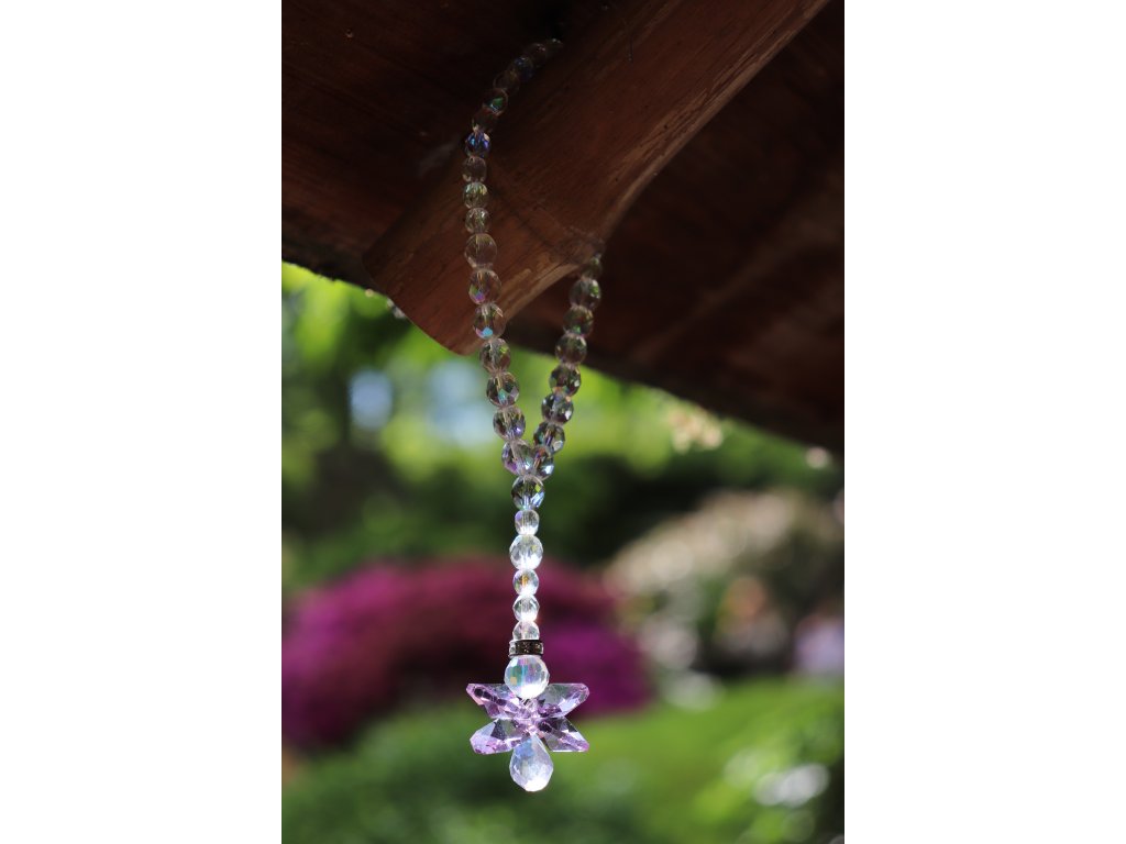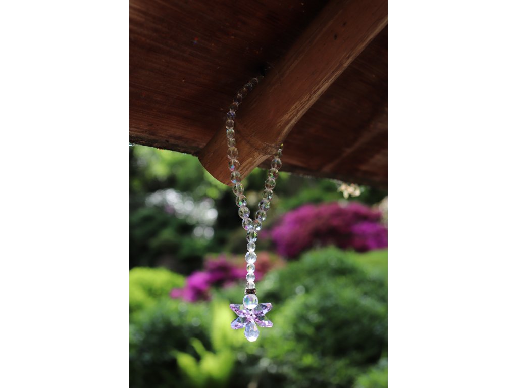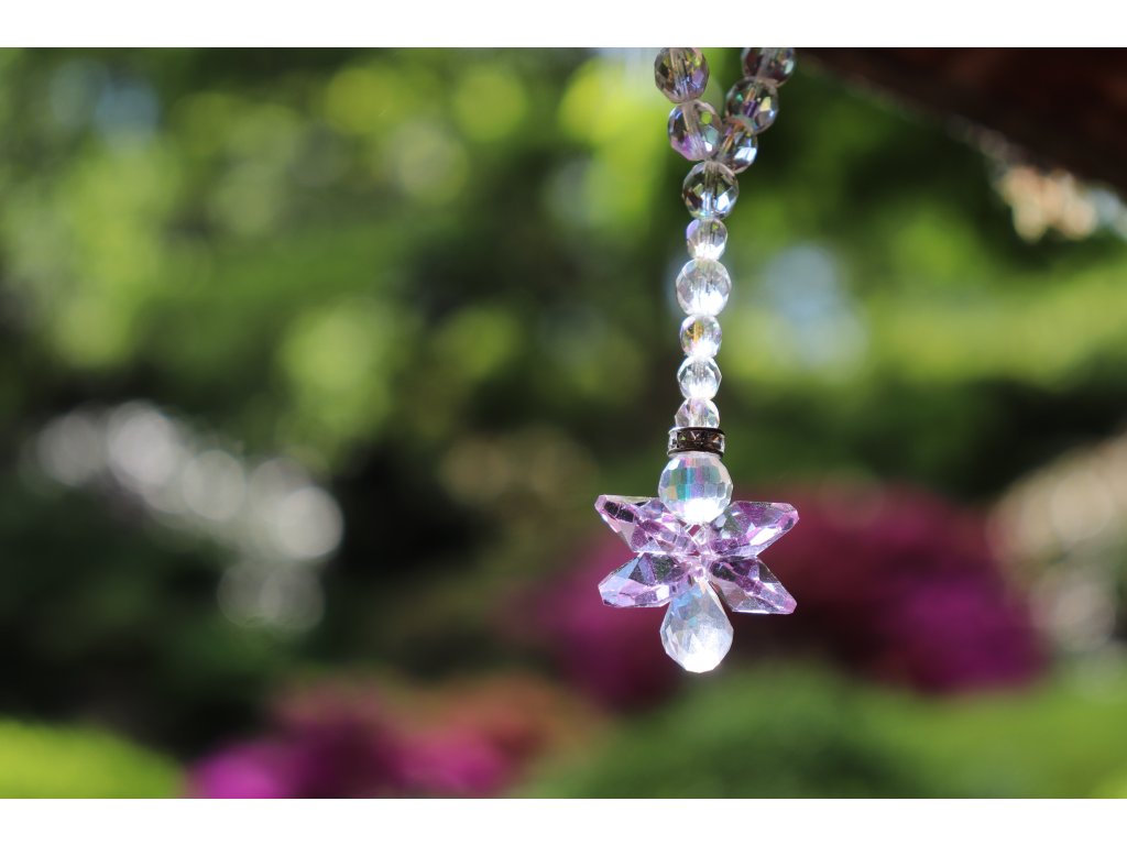Přívěsek se hodí na zrcátko do auta nebo jen pro radost a štěstí majiteli. Můžete ho ale pověsit třeba na garnýž v bytě, lustr nebo na jiné oblíbené místo, kde vám bude na blízku. V různém světle bude působit jinak a pokud na něj zasvítí sluníčko, rozehraje se kolem něj hra světýlek.