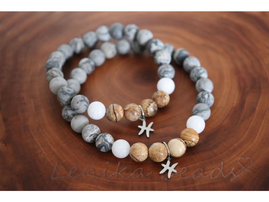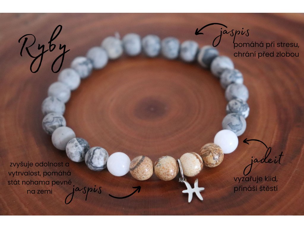 S láskou a péčí jsem vybrala a spojila jadeit, obrázkový a picasso jaspis, aby vytvořily tento náramek. Každý kámen je známý svými vlastními léčivými vlastnostmi a když jsou spojeny, vytvářejí harmonickou kombinaci, která působí jako silný amulet pro toho, kdo jej nosí, zejména pro znamení zvěrokruhu Ryby.