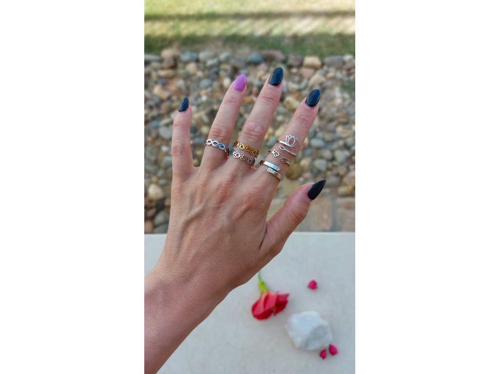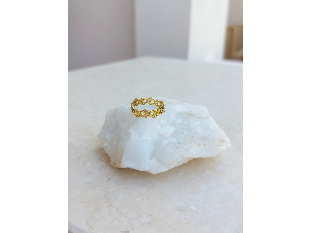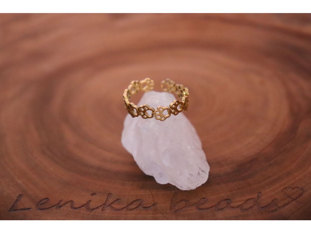 Prstýnek je z chirurgické oceli ve zlaté barvě. Velikost univerzální.