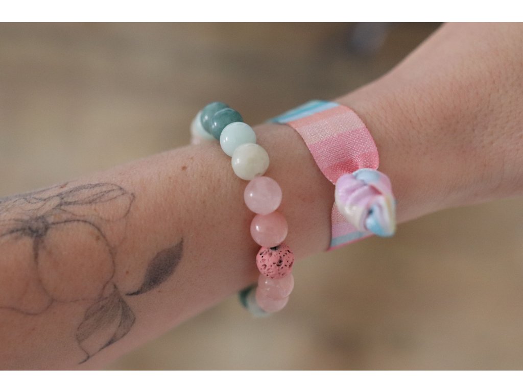 Můžete nosit ve vlasech ale také na zápěstí s náramky.