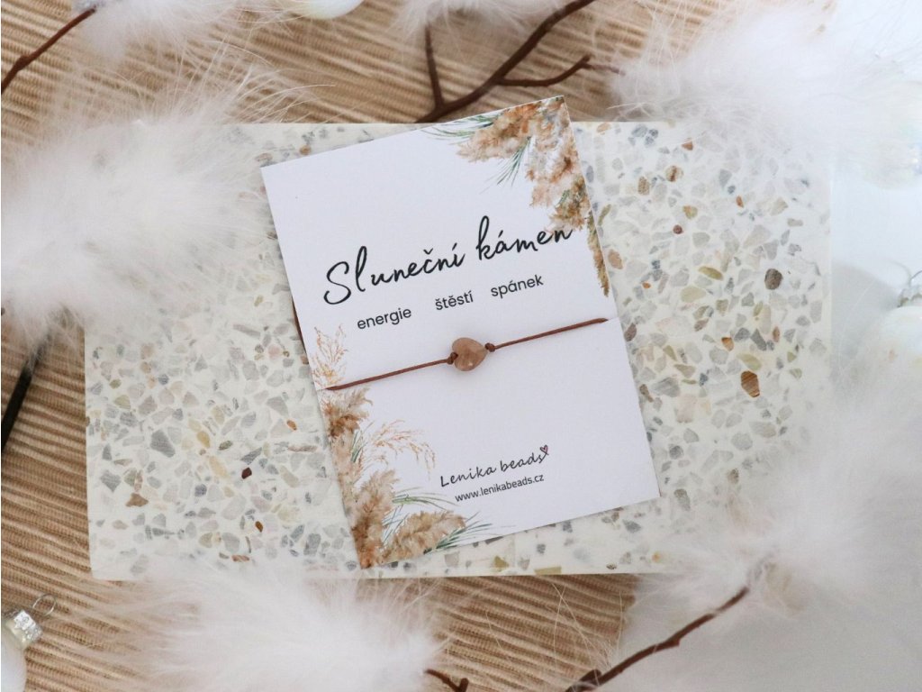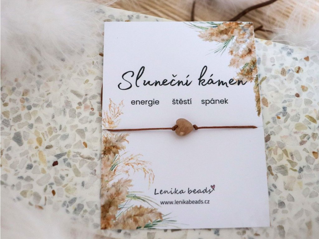 Jemný náramek pro minimalistky se srdíčkem ze slunečního kamene velikosti 8 x 8 x 4,3 mm