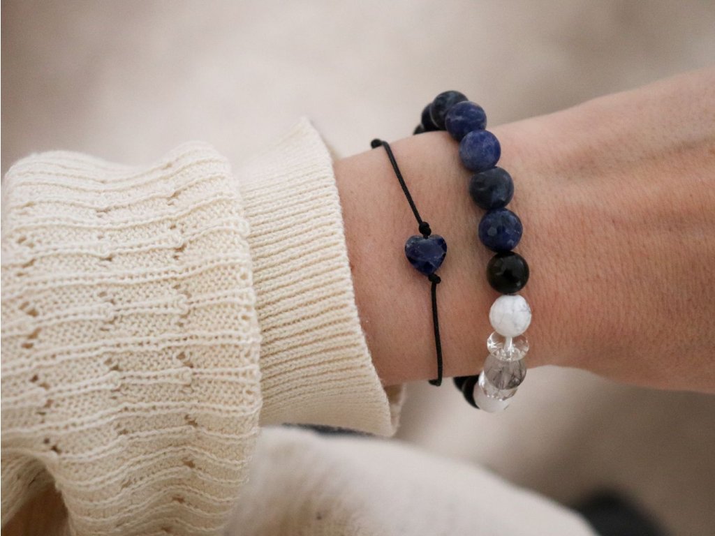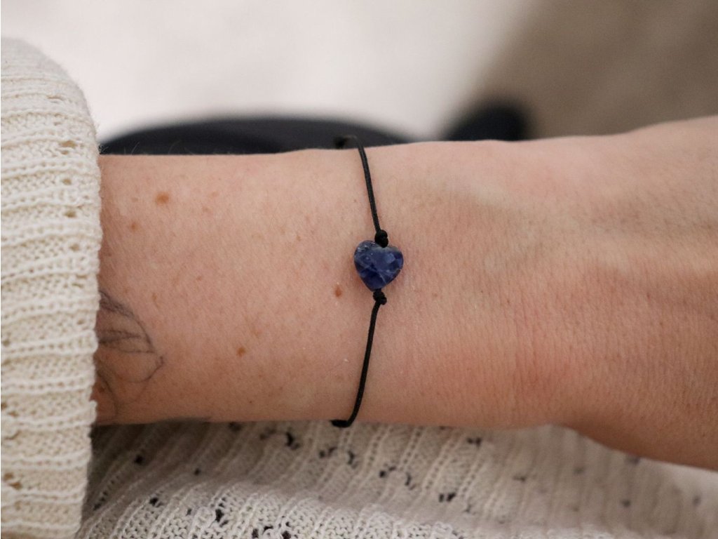 Jemný náramek pro minimalistky se srdíčkem ze sodalitu velikosti 8 x 8 x 4,3 mm